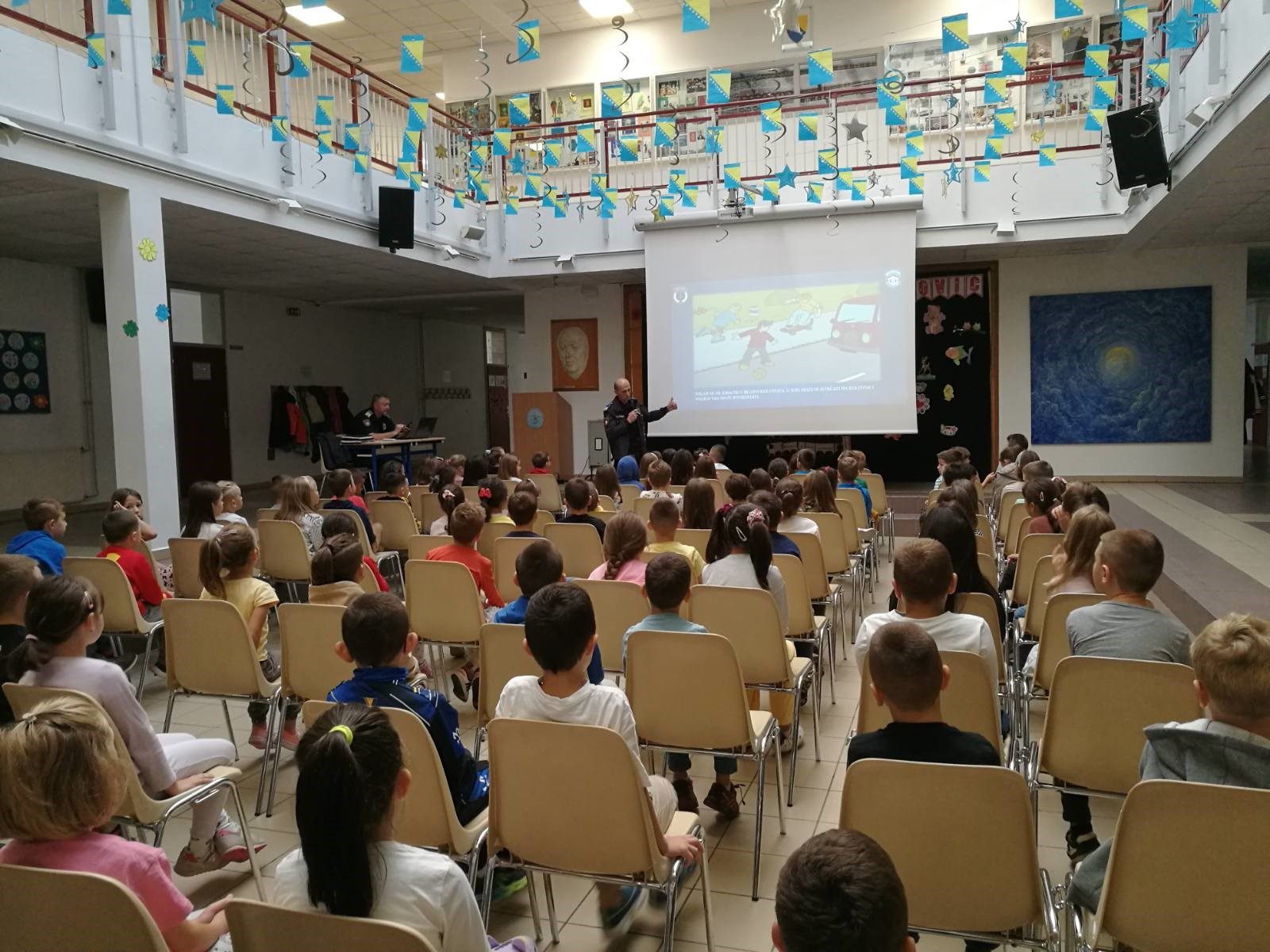 U utorak, 26.9.2023.g. našu školu su posjetili policijski službenici MUP-a Novi Grad. Cilj posjete je bio da đake prvake upoznaju … Continue reading POSJETA MUP-a NOVI GRAD