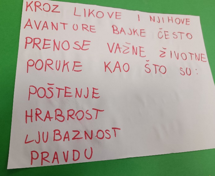 Cilj ove aktivnosti bio je upoznati učenike s osnovama bajki, pročitati bajke, analizirati njihove likove, ideje i teme, potaknuti kreativnost kroz ilustraciju bajki, razvijati kritičko mišljenje kao i koristiti matematičke zadatke povezane s temom bajki za razvijanje logičkog razmišljanja. Aktivnost je bila uspješna i omogućila je učenicima da se na zabavan način upoznaju s bajkama, razvijaju kreativne sposobnosti i vještine analize književnih djela, a istovremeno proširuju svoje matematičko znanje. Kroz ove aktivnosti, učenici su naučili kako povezati različite discipline – književnost, umjetnost i matematiku Aktivnosti su bile vrlo motivirajuće, a učenici su uživali u kreativnom izražavanju i rješavanju matematičkih zadataka. Učenici su pokazali izuzetnu kreativnost u ilustracijama, a njihova sposobnost analize likova i tema bila je na visokom nivou. Ova aktivnost je bila odlična prilika za integraciju različitih nastavnih predmeta u jedan zajednički projekt, čime je potaknuta njihova svestranost i kritičko razmišljanje.