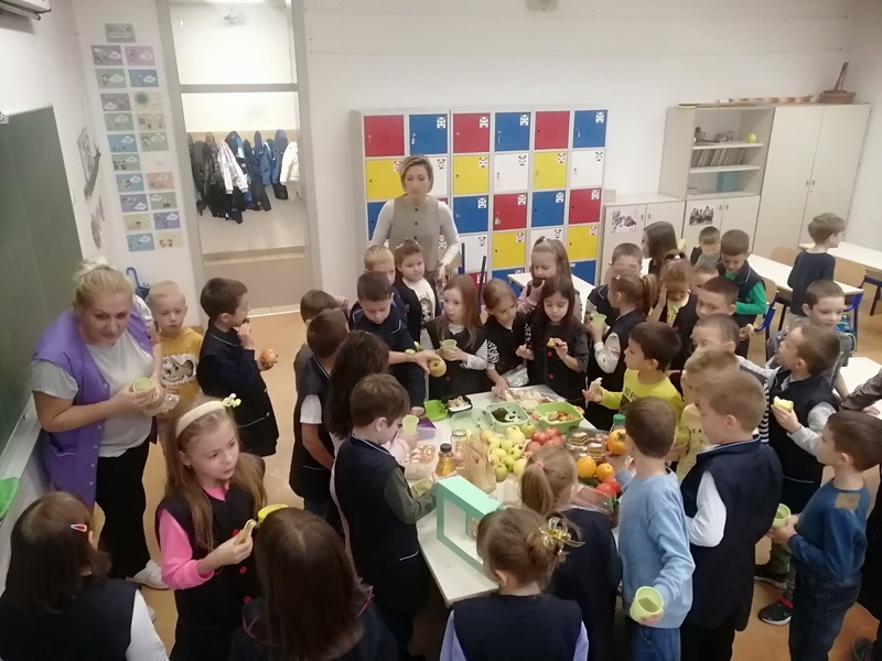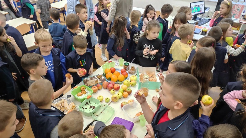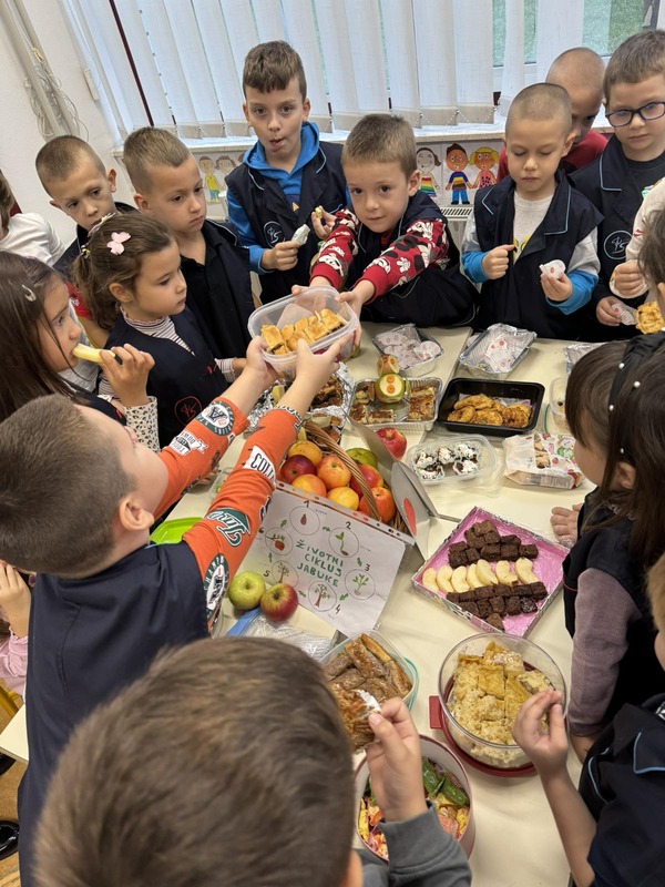 U našoj školi je ove godine obilježen Dan jabuka. U cilju promocije zdravih prehrambenih navika, učiteljice prvih razreda su zajedno sa učenicima i njihovim roditeljima u školu donijeli jabuke i poslastice od jabuka. Sve školske aktivnosti su taj dan bile usmjerene ka podizanju svijesti o važnosti jabuka i znanja o jabukama. Učenici su imali priliku da se upoznaju sa različitim sortama jabuka, proizvodima od jabuka poput soka, džema, pekmeza, sirćeta, te raznoraznim slasticama napravljenim od jabuka. Cilj aktivnosti je bio da učenici uvide veliki uticaj jabuke na zdravlje i da jabuku uvrste u svakodnevnu ishranu.