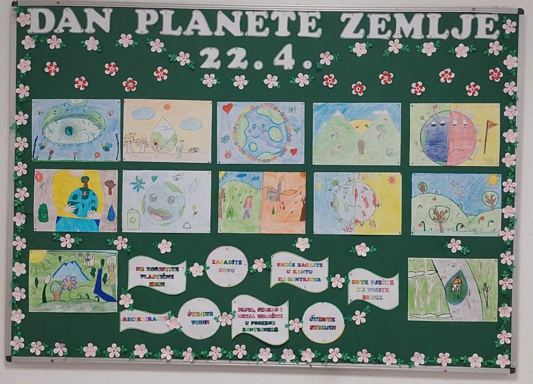 Draga djeco, Danas obilježavamo Dan planete Zemlje, dan kada se širom svijeta podsjećamo koliko je važno da čuvamo prirodu i našu prelijepu planetu! Zemlja je naš dom – daje nam zrak koji dišemo, vodu koju pijemo, hranu koju jedemo i mjesta gdje se igramo i rastemo. Da bi sve to ostalo lijepo i čisto, moramo je čuvati i paziti svaki dan. Zato vas pozivamo da zajedno naučimo kako možemo pomoći našoj planeti: • Sadnjom drveća i cvijeća • Bacanjem smeća na pravo mjesto • Reciklažom papira, plastike i stakla • Gašenjem svjetla kada nam ne treba • Hodanjem ili vožnjom bicikla umjesto autom kada možemo. Zajedno možemo napraviti veliku promjenu! Sretan Dan planete Zemlje! Čuvajmo je – jer druge nemamo. Vaša škola