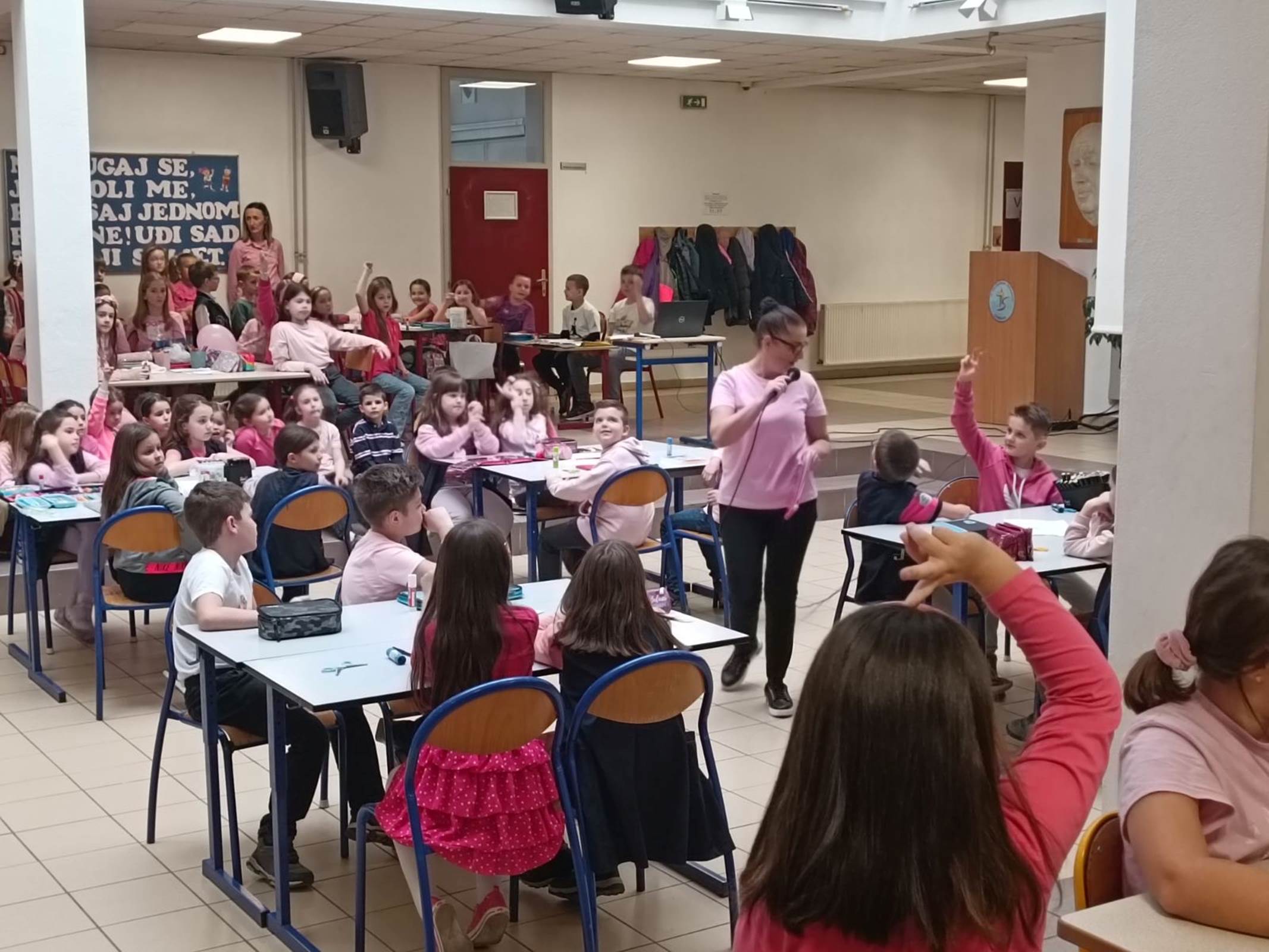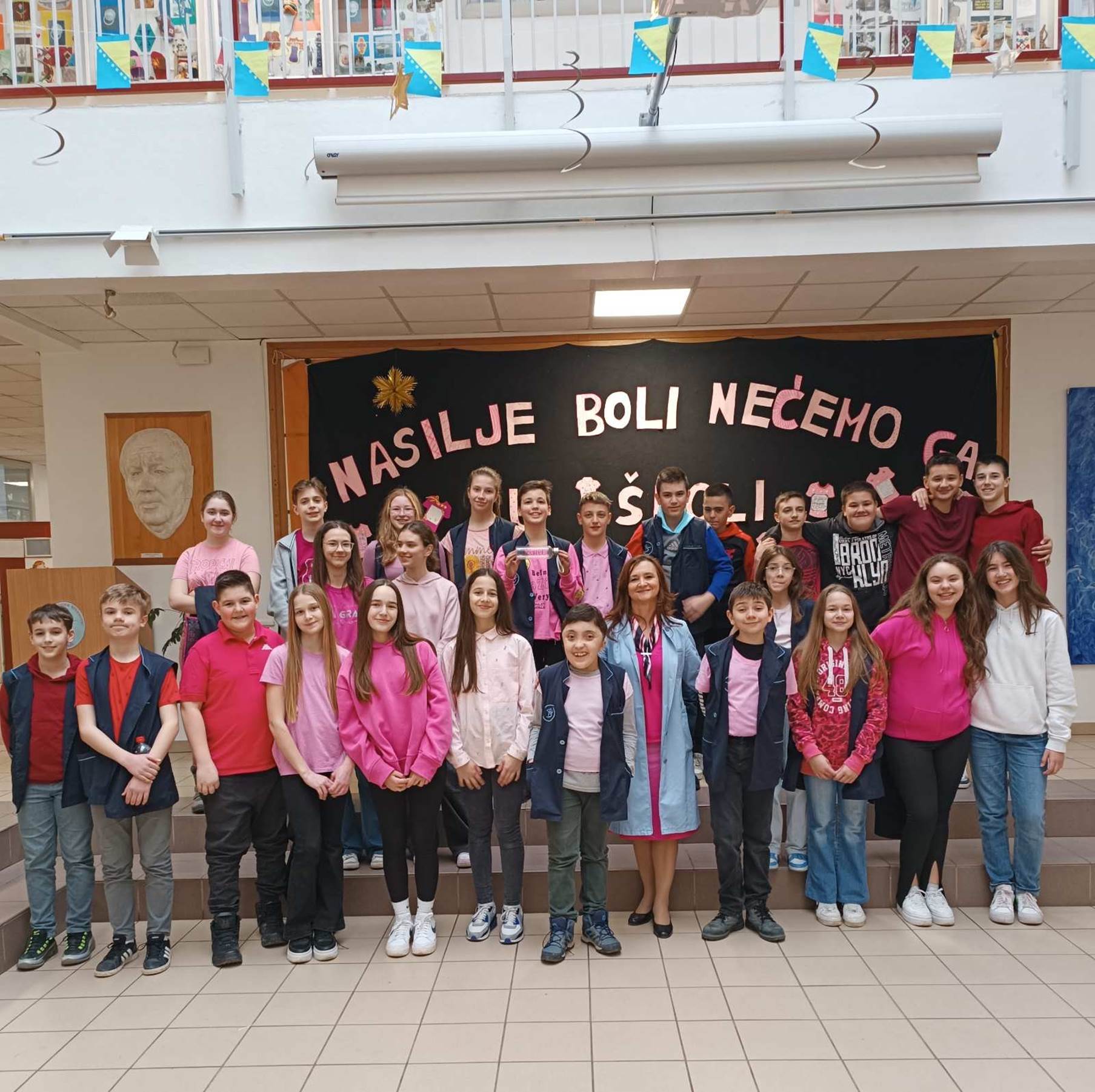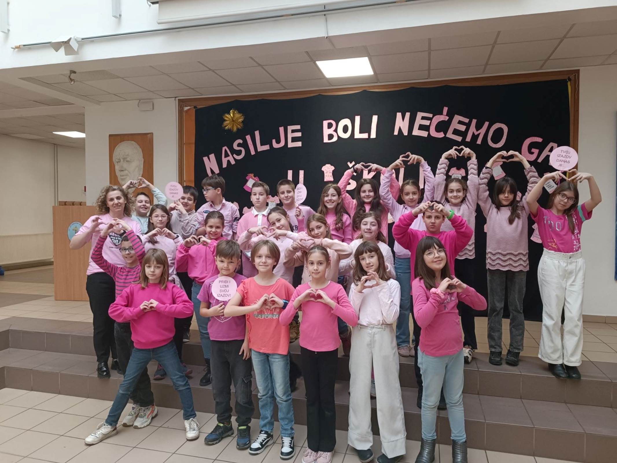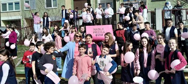 Ponosni smo što je naša škola 28.02.2024. godine, od ranih jutarnjih sati, bila centralno mjesto za obilježavanje Dana borbe protiv vršnjačkog nasilja. Televizija BHT je na jutarnjem programu prenosila dio atmosfere koju su zabilježili u dva odjeljenja četvrtih razreda. Učenici navedenih razreda su na velikom odmoru svojim drugarima iz susjednih odjeljenja poklonili „Izazove prijateljstva“ u vidu motivirajućih poruka koje imaju za cilj jačanje empatije, ljubavi i prijateljstva.