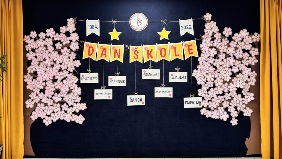 Danas s ponosom obilježavamo Dan naše škole – mjesto gdje znanje raste, prijateljstva se grade, a snovi postaju stvarnost. 🌸