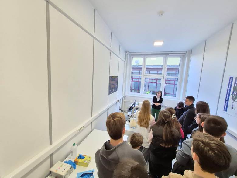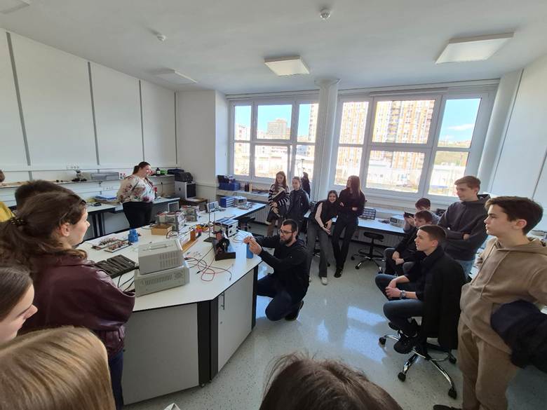 Povodom manifestacije „Dani otvorenih vrata Odsjeka za fiziku“, učenici devetih razreda naše škole, u pratnji nastavnika Elvira Drece, 08.04.2026. godine posjetili su Prirodno-matematički fakultet u Sarajevu. Tokom posjete obišli su tri laboratorije, gdje su ih asistenti fakulteta upoznali s različitim oblastima fizike kroz zanimljive oglede, demonstracije i kratka predavanja. Učenici su imali priliku da na praktičan način vide primjenu fizikalnih zakona i dodatno razviju interes za ovu nauku. Naši domaćini bili su šef Odsjeka za fiziku prof. dr. Vanes Mešić, zatim dr. Abdulah Jašarević, mr. Džana Salibašić, kao i ostali asistenti PMF Sarajevo, kojima se ovom prilikom zahvaljujemo na gostoprimstvu i uloženom trudu. Ova posjeta bila je izuzetno korisna i inspirativna za naše učenike te vjerujemo da će mnogima biti podstrek za daljnje obrazovanje u oblasti prirodnih nauka.
