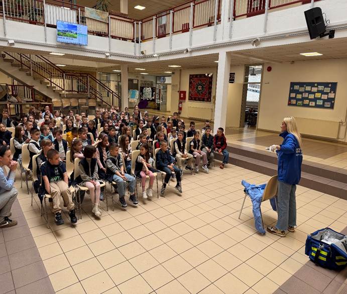 19.04.2026. godine u našoj školi je za učenike prvih razreda realizirana edukacija na temu pravilne higijene ruku, kao jedne od osnovnih preventivnih mjera u zaštiti zdravlja od zaraznih bolesti. Edukaciju je realizirala predstavnica Zavoda za javno zdravstvo Kantona Sarajevo, koja je na prilagođen i interaktivan način učenicima približila značaj redovnog i pravilnog pranja ruku, kao i važnost lične higijene u očuvanju zdravlja. Cilj ove aktivnosti bio je razvijanje zdravih navika kod najmlađih učenika, te podizanje svijesti o značaju prevencije u svakodnevnom životu.