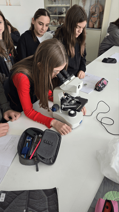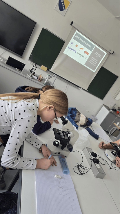 Učenici sedmog razreda su na redovnim časovima biologije učestvovali u zanimljivim i edukativnim laboratorijskim vježbama. Tokom laboratorijskog rada, učenici su posmatrali bakterije pod mikroskopom, upoznavajući se s njihovim oblikom, veličinom i osnovnim karakteristikama.