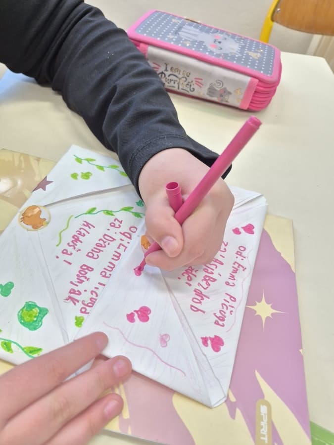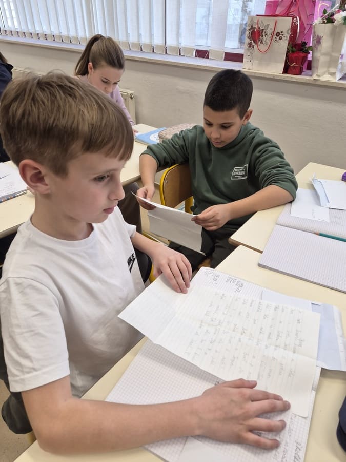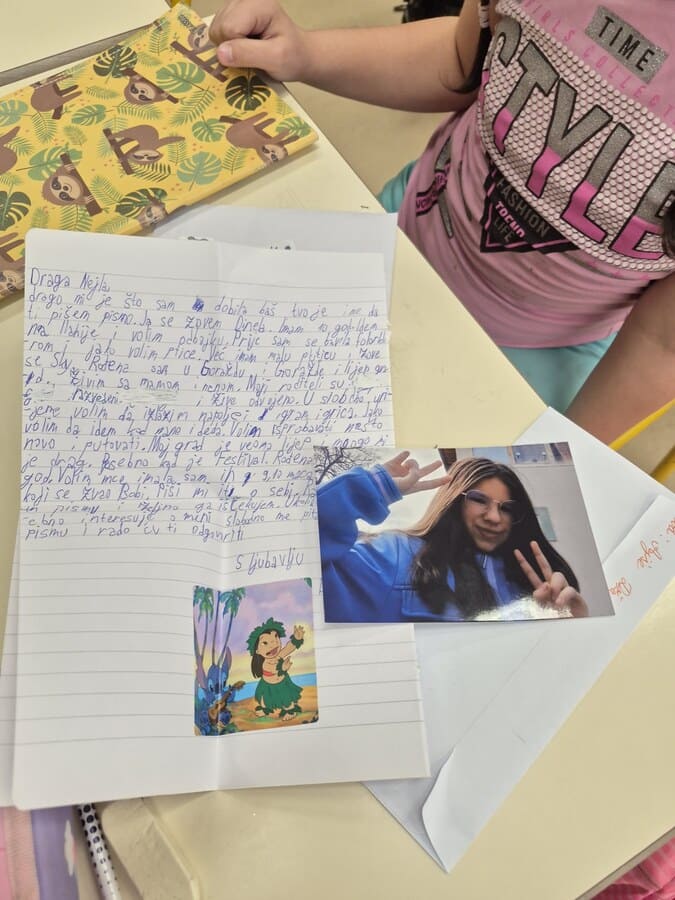 Kada su stigla prva pisma, taj trenutak bio je ispunjen posebnom čarolijom. Učenici su ih otvarali s velikim nestrpljenjem, pažljivo čitali svaku riječ i iznova im se vraćali. Njihove oči su sjajile, a osmijesi su se spontano širili učionicom. U tim trenucima osjećala se prava dječija radost – ona iskrena, čista i topla. Posebno ih je obradovalo saznanje da negdje daleko postoje vršnjaci koji žele da ih upoznaju, podijele svoje misli, snove i svakodnevicu. S mnogo pažnje, truda i ljubavi pisali smo odgovore, birajući riječi srcem, a uz pisma slali i crteže – male, šarene dijelove našeg svijeta, ispunjene željom da naši novi prijatelji osjete koliko nam znače.