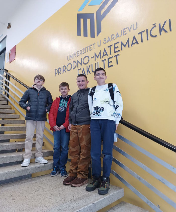 Kvalifikaciono takmičenje za plasman na federalno takmičenje iz matematike koje će se održati u Tuzli 10.05.2025. godine za učenike osnovnih škola je održano u subotu, 26. aprila na Prirodno-matematičkom fakultetu u Sarajevu. Naša škola je imala svoje predstavnike u sedmom i osmom razredu. Ekipa sedmih razreda u sastavu: Ćesko Harun, Višnjić Edin, Demir Harun i Ekrem Sušić. Ekipa osmih razreda u sastavu: Amina Agović i Hamza Drkić. Naši vrijedni učenici su pokazali odlično znanje i postigli izvrsne rezultate, a plasman na predstojeće federalno takmičenje su ostvarili učenici Amina Agović, Hamza Drkić i Edin Višnjić. Direktni plasman na federalno takmičenje je već ranije ostvarila naša učenica Iman Boškailo osvojivši 2. mjesto na kantonalnom takmičenju iz matematike za učenike osmih razreda. Čestitamo našim učenicima na odličnom uspjehu i želimo im puno sreće na narednom takmičenju.