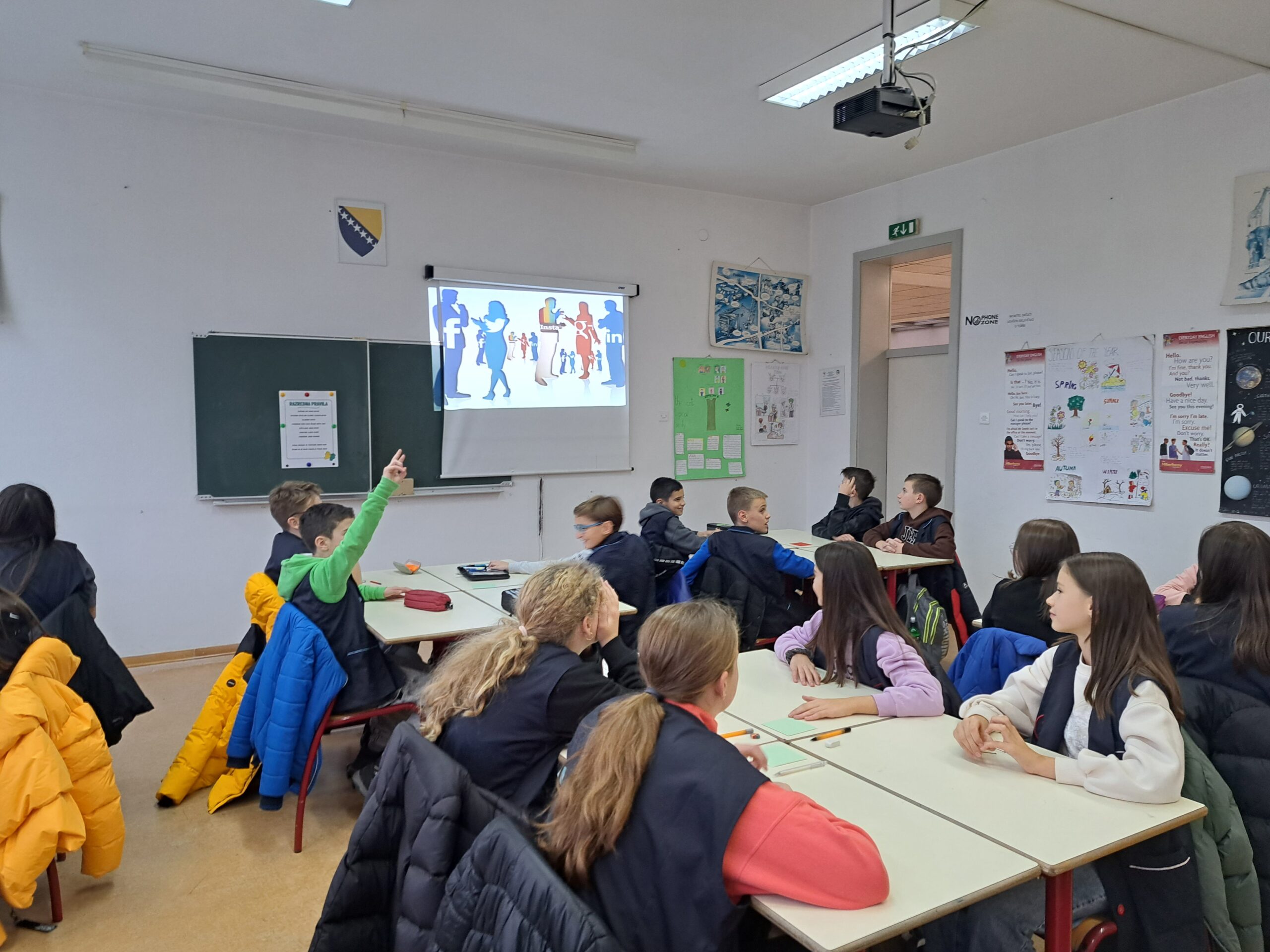 U prostorijama naše škole u srijedu 22. 11. 2023. godine održana je edukativno interaktivna radionica sa učenicima VI-2 odjeljenja na temu „Pravila lijepog i pristojnog ponašanja i komuniciranja na internetu“ na kojoj je, u ime Instituta za društvena istraživanja Fakulteta političkih nauka UNSA, prisustvovala docentica Anida Dudić-Sijamija i studentica MA studija informacijskih nauka Merjem Kustura koje su zajedno ispratile proces i tok planiranih aktivnosti.