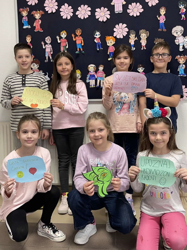 Učenici III2 odjeljenja i učenici I3 odjeljenja kroz aktivnost podrške Svjetskom danu osoba s Down sindromom porukama i šarenim čarapama poručili da “Ljubav ne broji hromozome”.
