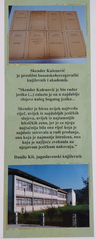 Na prijedlog članova Aktiva bosanskog jezika i književnosti, hrvatskog jezika i književnosti, srpskog jezika i književnosti, a uz saradnju i podršku Uprave škole realizovan je projekat „Skender u Skenderu“. Učenici su i na ovaj način upoznati sa bitnim značajkama iz života i rada znamenitog bosanskohercegovačkog književnika i akademika Skendera Kulenovića.