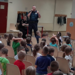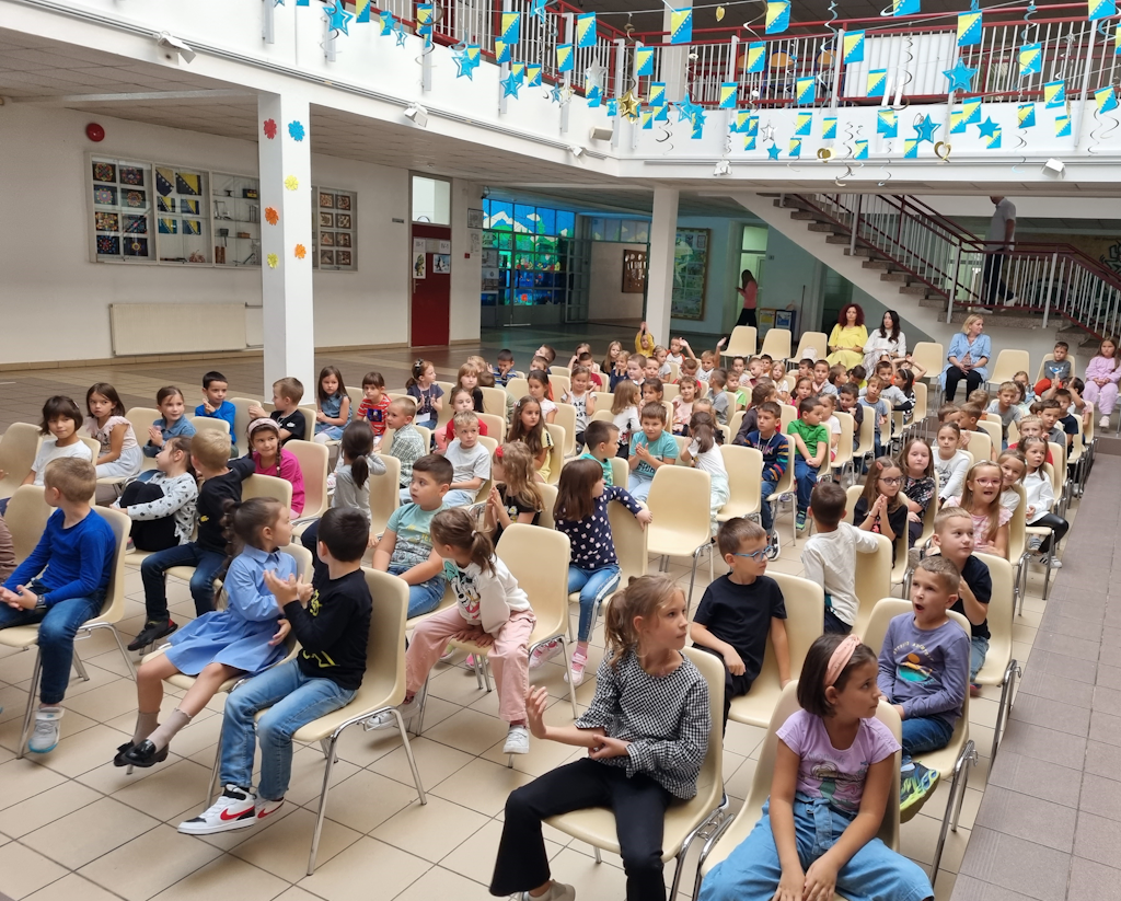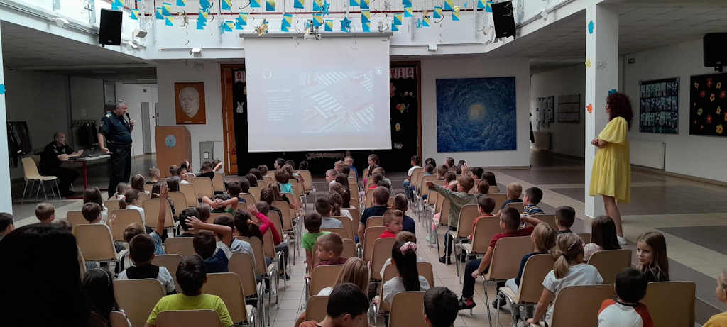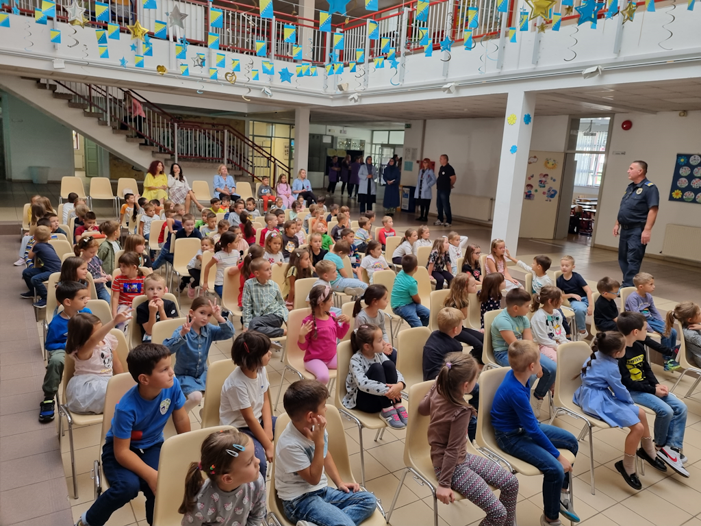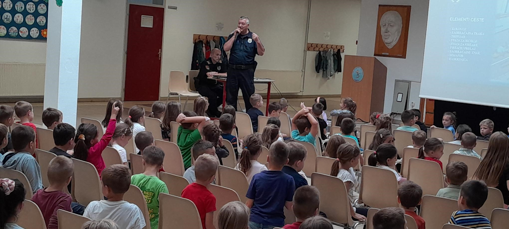 U utorak, 26.9.2023.g. našu školu su posjetili policijski službenici MUP-a Novi Grad. Cilj posjete je bio da đake prvake upoznaju sa pravilima kretanja u saobraćaju, s posebnim naglaskom na siguran put učenika od kuće do škole i obrnuto. Posjeta je realizovana u holu škole. Posjeti su prisustvovali svi učenici prvih razreda, sa svojim učiteljicama, pedagoškom službom škole i direktoricom. Učenici su pogledali crtani film „Pažljivko“, a zatim su policijski službenici na veoma zanimljiv način pokazali našim đacima kako da sigurno pređu ulicu i kako da se pravilno kreću putem. Nadamo se da će naši đaci pravilno koristiti sve ono što su taj dan naučili o ponašanju i sigurnosti u saobraćaju.