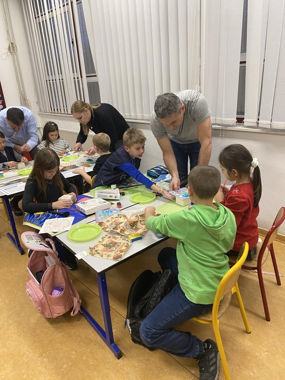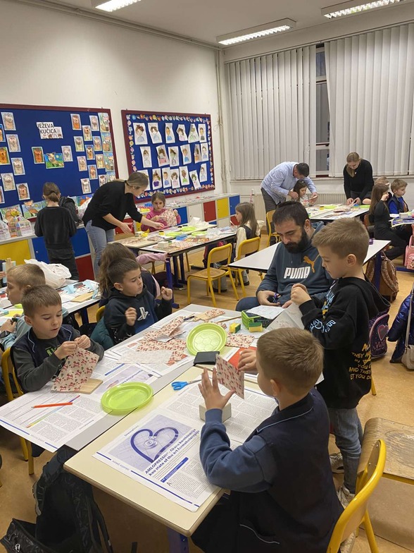 U srijedu, 4.12. 2024. godine u odjeljenjima drugog razreda realizovana je radionica za učenike i roditelje.Tokom radionice roditelji i djeca, zajedno sa svojim učiteljicama, su timskim radom stvarali prava umjetnička djela na drvenim predmetima tehnikom dekupaž. Radionica je bila prilika za druženje i razvijanje kreativnosti. Vladala je ugodna radna atmosfera, a uz to svi su se dobro zabavili.Radost, smijeh i kreativnost ispunili su naše učionice.