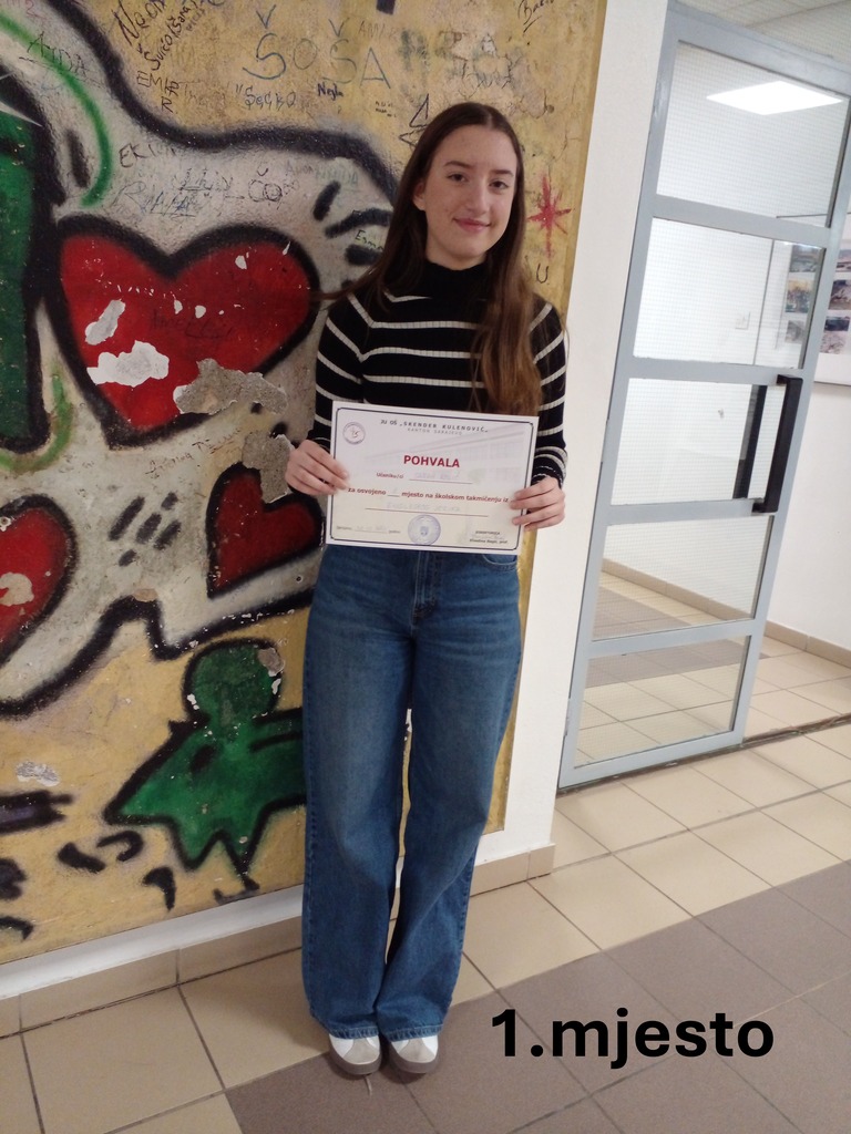 Prvo mjesto je osvojila Sarah Kolić, koja će predstavljati našu školu na Kantonalnom takmičenju iz engleskog jezika u aprilu.