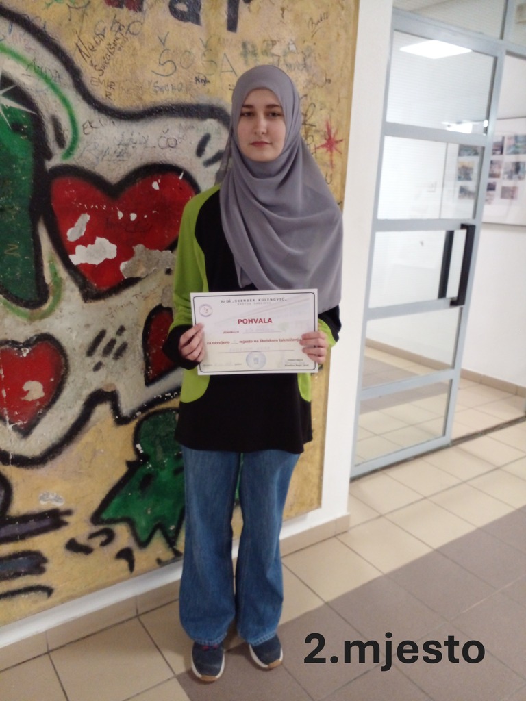 Drugo mjesto je osvojila Aiša Skenderi, dok treće mjesto dijele učenice Nora Dudo i Emana Karahasanović.