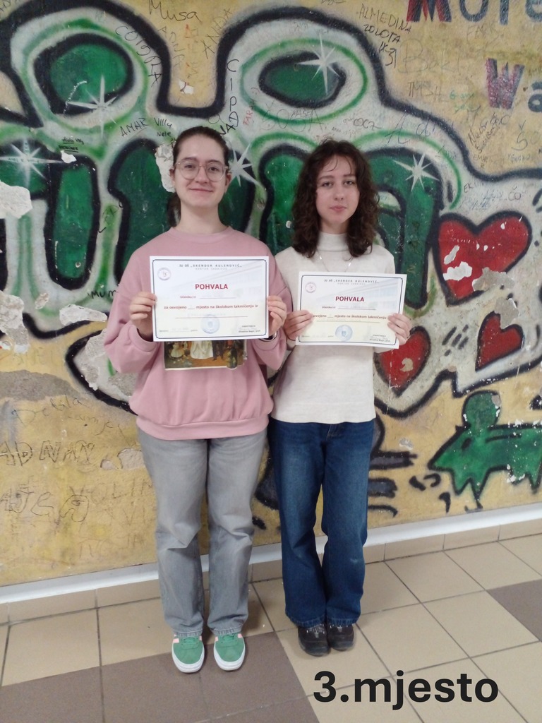 Čestitamo našim učenicama na ostvarenim rezultatima, a Sarah želimo mnogo uspjeha na predstojećem Kantonalnom takmičenju!