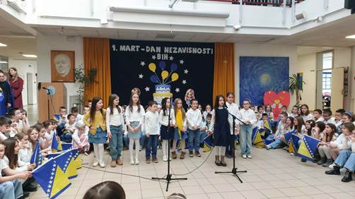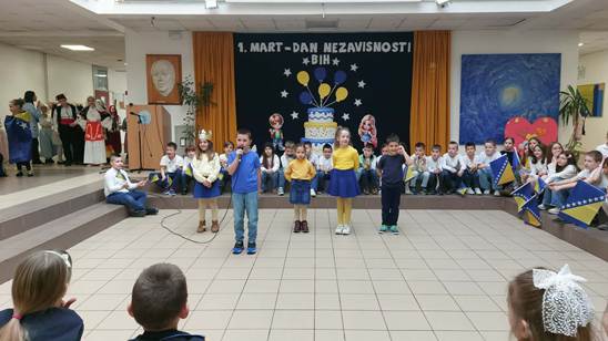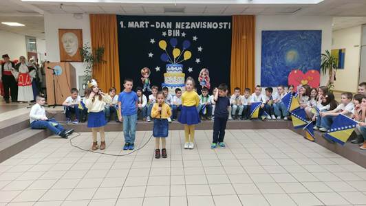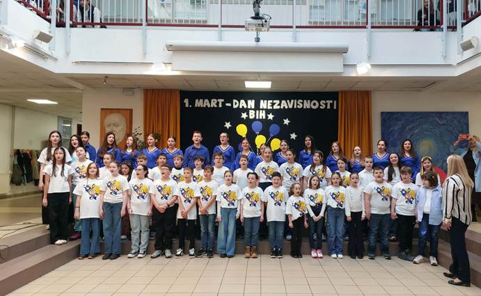 Ljubav prema domovini jedna je od moralnih vrijednosti koju razvijamo i njegujemo u školskom okruženju znajući da ona obezbjeđuje zajedništvo i jedinstvo među pojedincima. Ljubav prema domovini koju su pokazali učenici naše škole kroz veoma bogat i zanimljiv kulturno-umjetnički program kazuje da ona, naša otadžbina, ne samo što je mjesto života naših predaka, ona je i prostor u kome slobodno učimo i radimo. Živimo okruženi prijateljima, podrškom pa nam je život u njoj posebno mio i drag. Svim građanima Bosne i Hercegovine, zemlje koja nosi snagu svojih rijeka, stamenost svojih planina, i toplinu svojih ljudi, sretan 1. mart, Dan njene nezavisnosti!